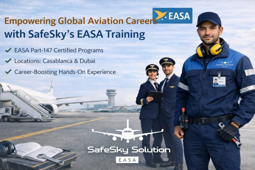 In an age where aviation continues to grow as one of the world’s most dynamic industries, securing a high‑quality, internationally recognized qualification is more important than ever. SafeSky’s EASA Training Programs are designed to do just that — empower students from around the globe to build rewarding careers in aircraft maintenance, aerospace operations, and technical aviation fields. From strategic training hubs in Casablanca and Dubai, SafeSky Solution Academy delivers industry‑leading education that aligns with EASA (European Union Aviation Safety Agency) standards — the global benchmark for aviation safety and technical excellence. What Is EASA and Why It Matters The European Union Aviation Safety Agency (EASA) sets the highest regulatory standards for aviation safety, maintenance, and technical training across Europe and beyond. EASA‑approved training programs are globally recognized, opening international opportunities in airlines, maintenance organizations (MROs), aviation authorities, and aerospace engineering firms. For aviation professionals, an EASA certification validates skills, enhances credibility, and accelerates career mobility worldwide. Why Employers Value EASA Training Training Programs That Launch Careers SafeSky Solution Academy offers a range of programs tailored for both new learners and experienced technicians: EASA Part‑147 Aircraft Maintenance Courses Designed to prepare candidates for official EASA exams and licensing, these courses focus on: Airframe and systems  Avionics and powerplant fundamentals Regulatory compliance and safety standards Technical Workshops & Labs Hands‑on exercises and simulation labs deepen understanding of complex aviation systems. Career Development Seminars Interactive coaching on resumes, interview readiness, and global employer expectations. Why Employers Value EASA Training Aviation employers around the world — from major airlines to precision MRO facilities — prefer candidates who have undergone EASA‑approved education because: A supportive learning environment Highly knowledgeable instructors with real industry experience Increased confidence entering the global aviation job market Strategically Positioned for the Future SafeSky’s global locations are not accidental.📍 Casablanca connects Africa to Europe and beyond, while📍 Dubai offers access to one of the busiest aviation markets in the world. Together, these hubs help students access opportunities on every continent. Gallery SAFESKEY SOLUTION Your Aviation Career Starts Here The future of flight belongs to those who are ready to learn, adapt, and lead. With SafeSky’s EASA‑aligned training programs, you’re not just earning qualifications — you’re joining a global network of aviation professionals equipped to face tomorrow’s challenges. Whether you’re aiming to maintain aircraft, advance into technical leadership, or explore aerospace innovation, SafeSky’s EASA training puts you on the runway to success.